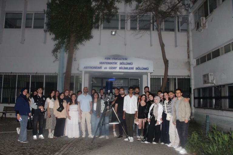 Son durağımızla kapanışı yapıyoruz: Ege Üniversitesi ve Astronomi ve Uzay Bilimleri Binası önü gece gözlemi