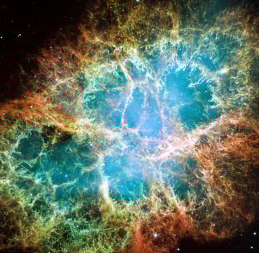 M1 olarak kataloglanan Yengeç Nebulası, Charles Messier'in kuyruklu yıldız olmayan nesnelerin ünlü listesindeki ilk nesnedir. Aslında, Yengeç Nebulası artık büyük bir yıldızın ölüm patlamasından kalan genişleyen bir enkaza, yani bir süpernova kalıntısına dönüştüğü bilinmektedir. Yengeç'in şiddetli doğumu, 1054 yılında astronomlar tarafından gözlemlenmiştir. Yaklaşık 10 ışık yılı genişliğinde olan nebula, hâlâ saatte yaklaşık 1,500 kilometre hızla genişlemektedir. Bu genişlemeyi, Hubble Uzay Teleskobu ve James Webb Uzay Teleskobu'ndan alınan bu keskin görüntüleri karşılaştırarak görebilirsiniz. Yengeç'in dinamik, parçalı iplikçikleri, Hubble tarafından 2005 yılında görünür ışıkta ve Webb tarafından 2023 yılında kızılötesi ışıkta yakalanmıştır. Bu kozmik kabuklu hayvan, Boğa takımyıldızında yaklaşık 6,500 ışık yılı uzaklıkta yer almaktadır.